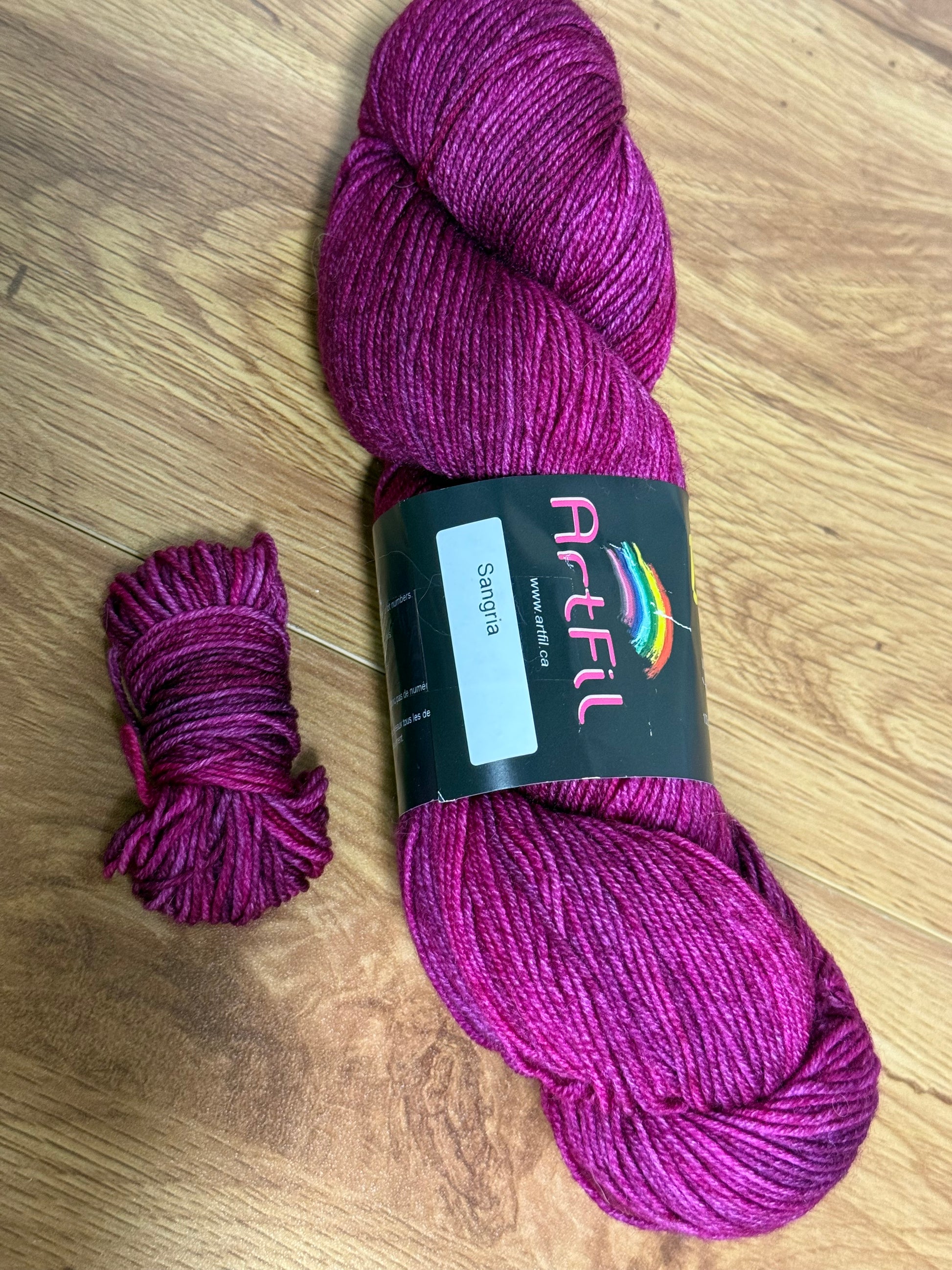 1 skein of Artfil Belle Fingering in colorway Sangria (plus bonus leftover!)