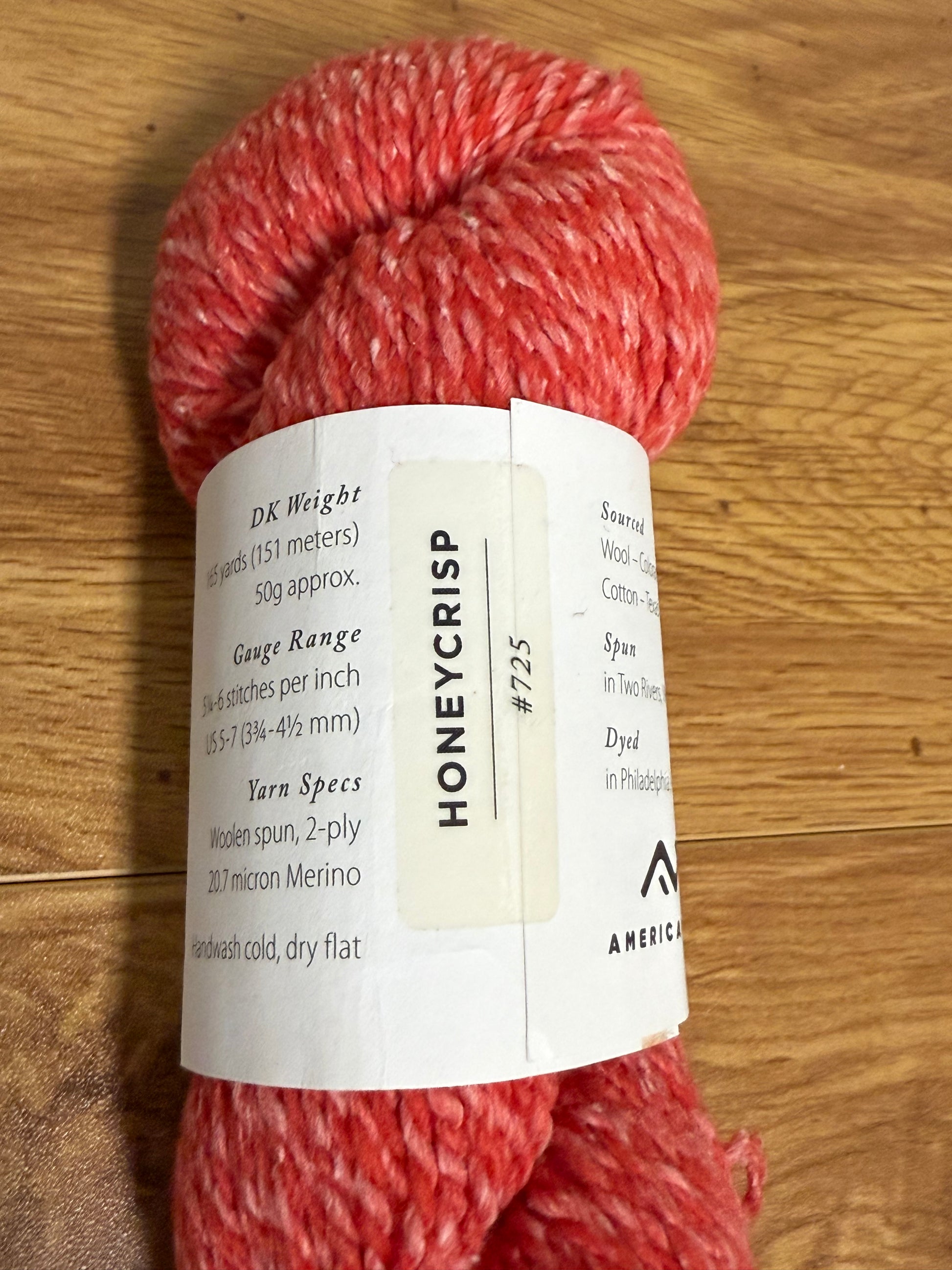 1 skein of Brooklyn Tweed Dapple in Honeycrisp (red tweed).