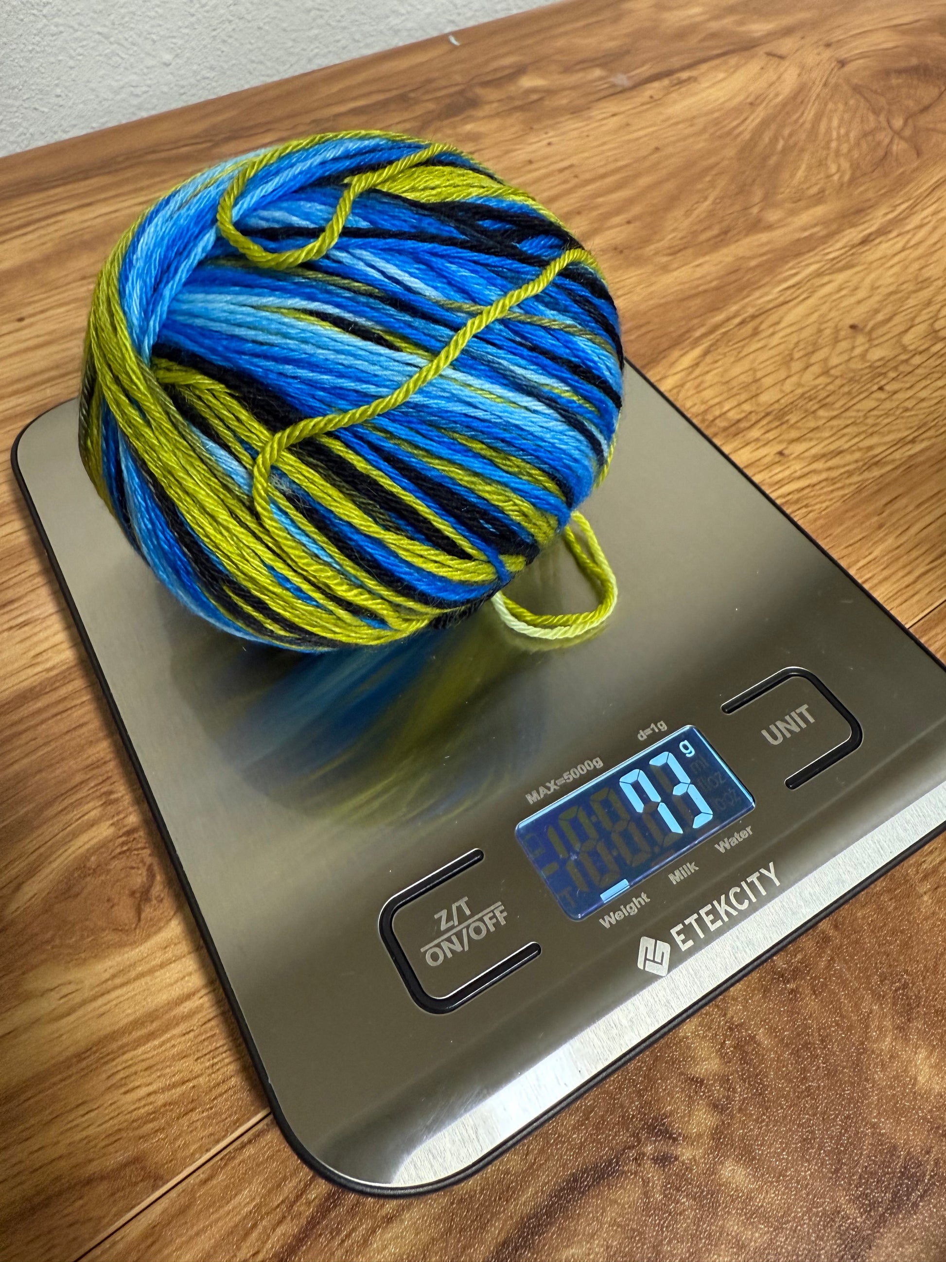 73g left. I knit my son a pair of socks (see image) with the first 30g. Enough left to make an adult pair of socks with contrasting heels and toes!